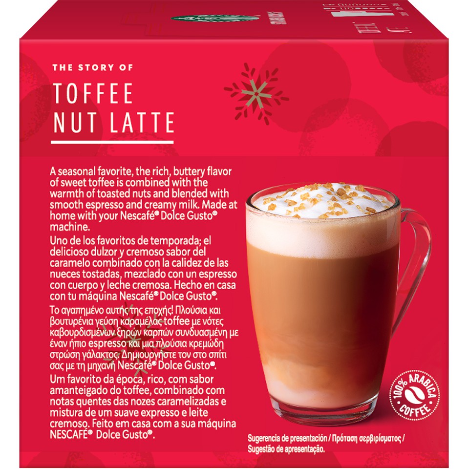 I buy coffee daily gold member even though I get an upset stomach. Buy STARBUCKS Toffee Nut Latte Limited Edition by NESCAFE DOLCE GUSTO Medium Roast Coffee Capsules 1278g Box of 66 online on Amazonae at best prices. To celebrate the joy of the holiday season we bring you a deliciously special blend Starbucks Toffee Nut Latte limited edition Premium Instant Coffee.