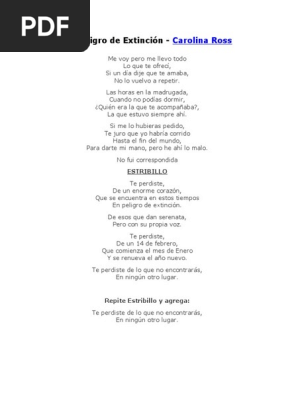 Me voy pero me llevo todo lo que te ofrecí Si un día dije que te amaba No lo vuelvo a repetir Las horas en la madrugada Cuando no podías dormir Quién era el que te acompañaba El que estuvo siempre ahí Si me lo hubieras pedido Te juro que yo habría corrido hasta el fin del mundo Para darte mi mano Pero he ahí lo malo No fui correspondido. En Peligro de Extinción. Te perdiste de un 14 de Febrero que comienza el mes de Enero y se renueva el año nuevo te perdiste de lo que no encontrarás en ningún otro lugar. Lorena Molinalorenamolina_music Rolitas Chidasrolitaschidaslyrics La Adictivalaadictivaoficial Jury Herediajuryheredia Willy Rodríguezwilly7390. Que comienza el mes de enero y se renueva el año nuevo Te perdiste de lo que no encontrarás En ningún otro. Me voy pero me llevo todo lo que te ofrecí Si un día dije que te amaba No lo vuelvo a repetir Las horas en la madrugada Cuando no podías dormir Quién era el que te acompañaba El que estuvo siempre ahí Si me lo hubieras pedido Te juro que yo habría corrido hasta el fin del mundo Para darte mi mano Pero he ahí lo malo No fui correspondido. El que estuvo siempre ahí. Me voy pero me llevo todo lo que te ofrecí. Te perdiste de lo que no encontrarás en ningún otro lugar.
